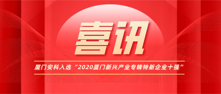 廈門安科入選“2020廈門新興產業專精特新企業十強”