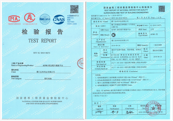 喜報 | 廈門安科AKPM01液壓爬升模架平臺通過國家建筑工程質量監督檢驗中心檢測