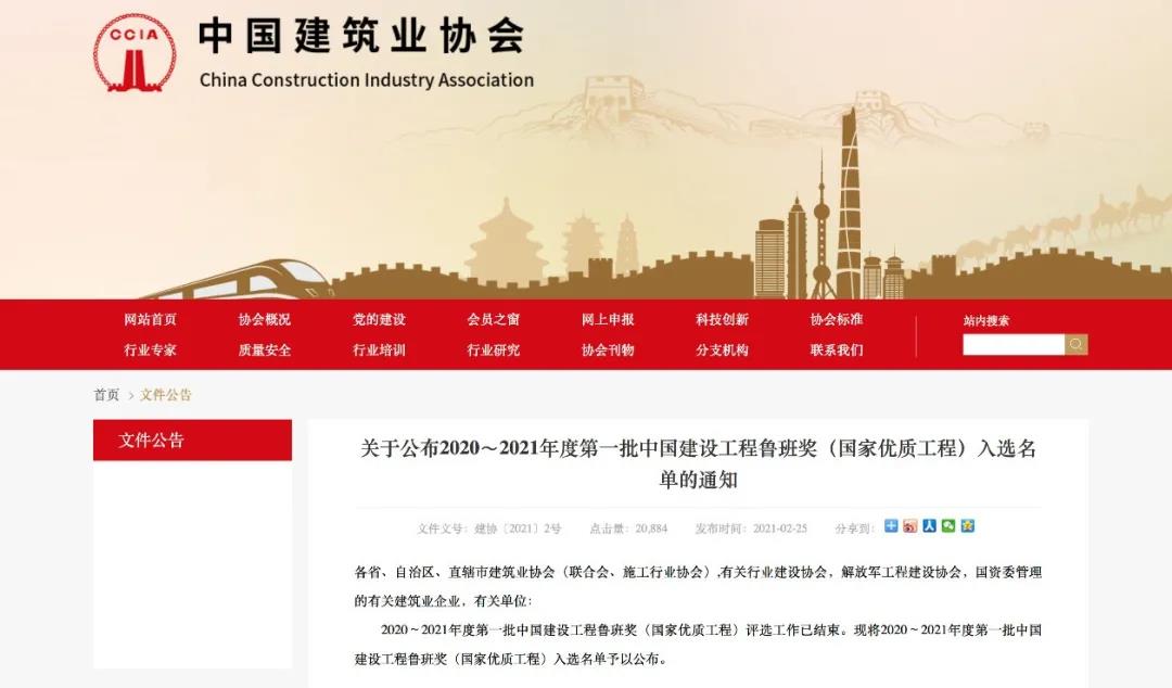 最新發布!2020~2021年度第一批“魯班獎”入選名單公布,126項工程入選