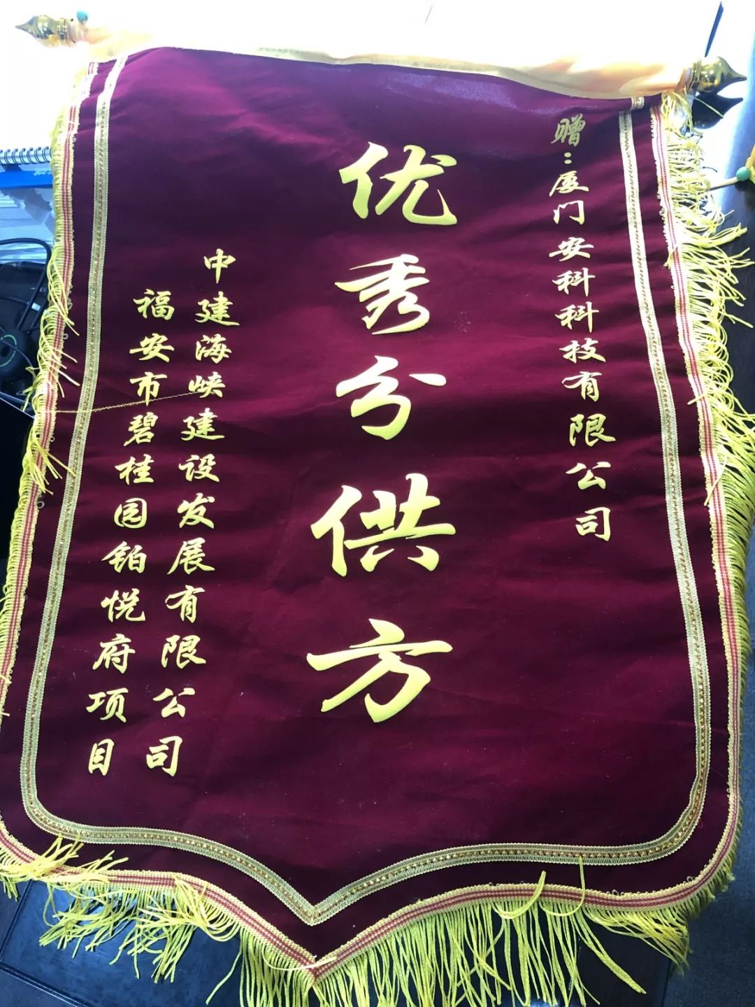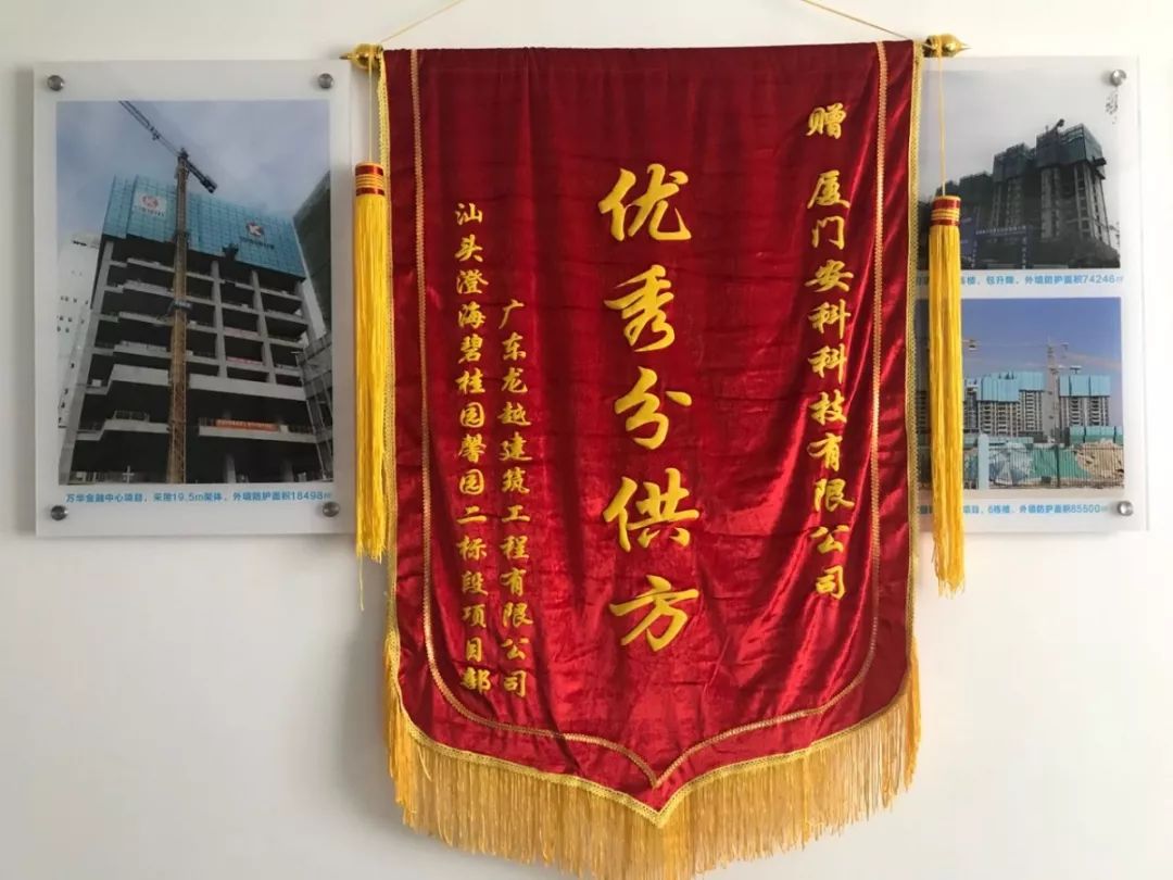 廈門安科獲廈門市建安集團(tuán)有限公司頒發(fā)的“優(yōu)秀分供方”榮譽(yù)錦旗