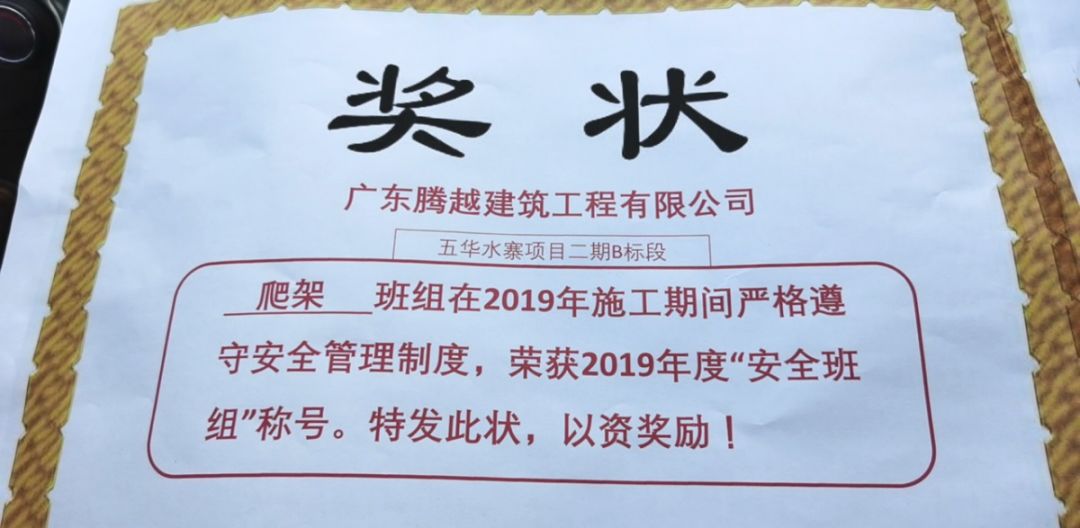 ?廈門安科爬架班組長方振軍獲廣東大城建設(shè)集團(tuán)有限公司頒發(fā)的2019年“優(yōu)秀班組長”榮譽(yù)證書