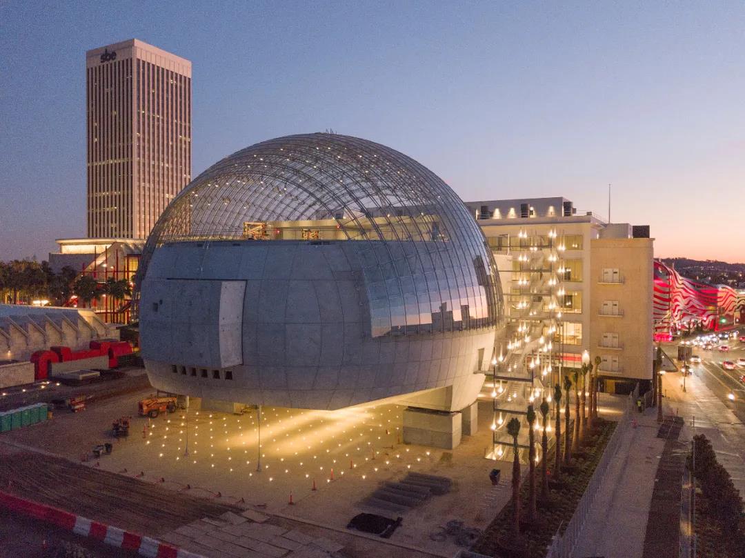 由倫佐·皮亞諾工作室所設計的奧斯卡電影博物館原定于2020年12月于洛杉磯對外開放,但由于疫情以及工期又延期至明年九月才正式開放。該項目坐落于奇跡一英里旁,包括對既有五月百貨公司的建筑改造,以及一個可容納1000人的全新玻璃球外殼的David Geffen劇院。建筑師還設計了一個標志性的玻璃球狀加建結構,以容納從首映發布會到電影放映之間的各類電影活動。同時,建筑師還在球狀空間的頂部設計了一個露臺,使得來訪者可以俯瞰整個好萊塢山。